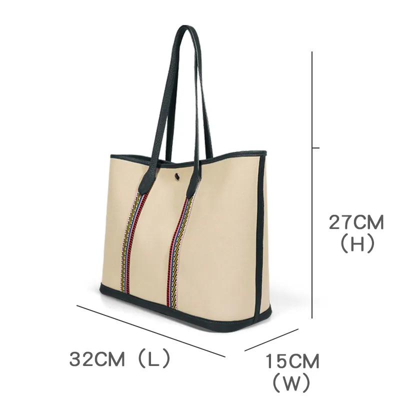 Beach daily shopping casual canvas patchwork handbag, high-quality luxury handbag for women,Lightweight versatile real cowhide and canvas bag